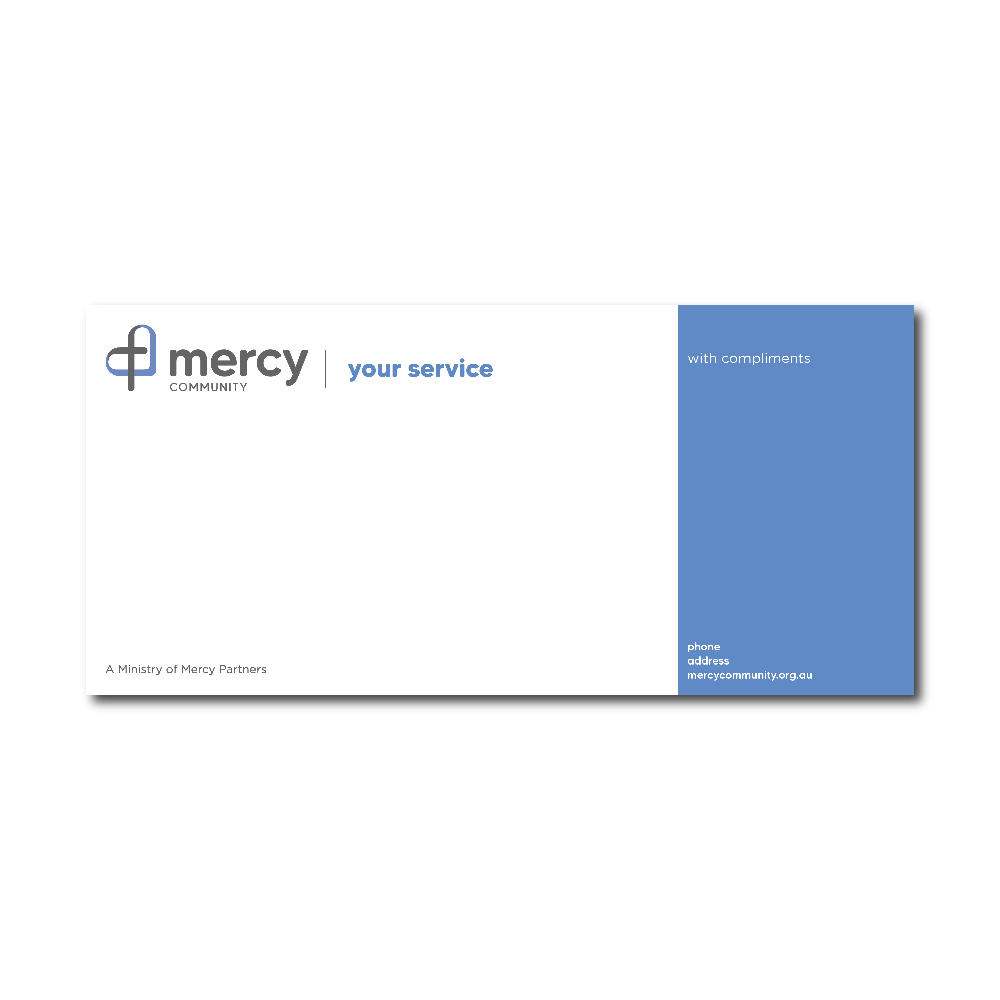 Compliment slips (210x99mm) with service details. Single-sided design.