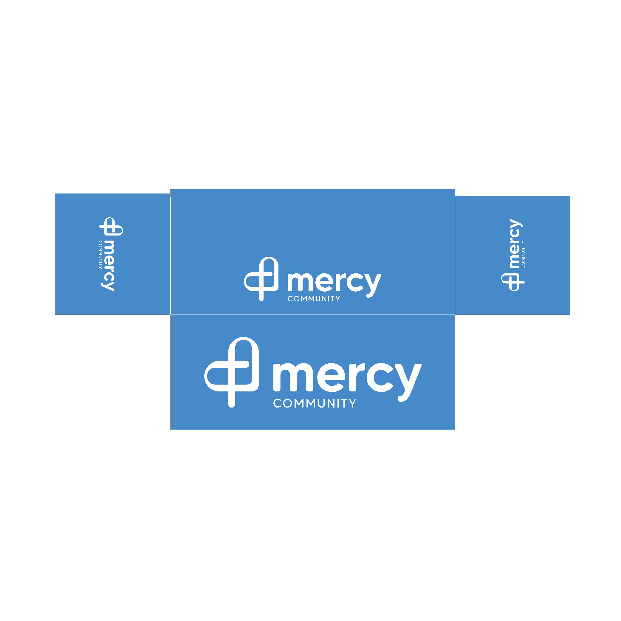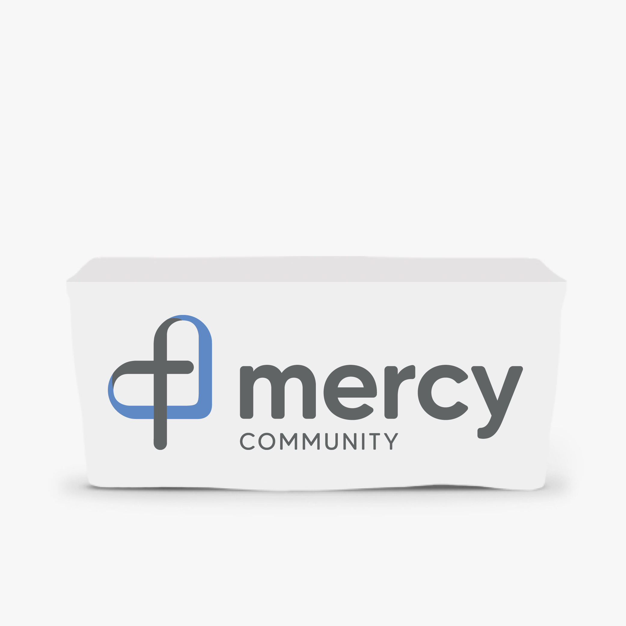 Mercy Community branded tablecloth. Fitted for 6ft trestle tables.